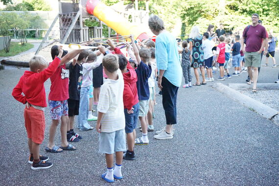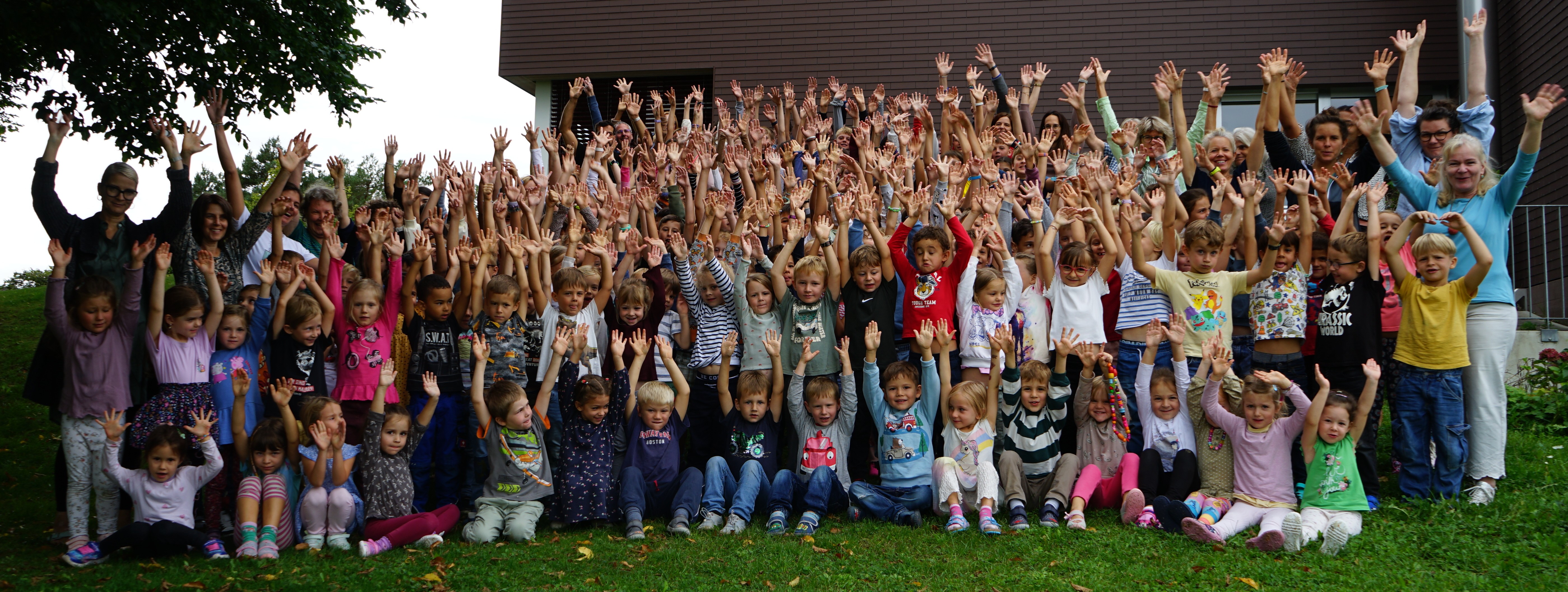 Am Mittwochmorgen fand die Evakuationsübung statt. Alle Kinder strömten eilig aus dem Schulhaus und dem Kindergarten, versammelten sich klassenweise auf dem roten Platz und wurden durchgezählt. Die ganze Aktion dauerte nicht einmal vier Minuten. Anschliessend wurde das Jahresfoto geknipst.